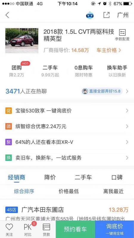 2018年9月本田繽智出廠新車。原指導(dǎo)價:145800元,現(xiàn)售價:135800元