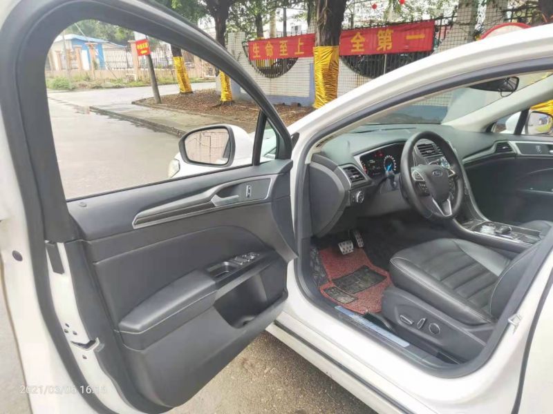 海豐二手車2017年12月福特蒙迪歐13.x萬元,自動2.0T時尚型,白色有天窗,多功能方向盤,雙電動座椅,電子擋和手剎,倒車影像,倒車?yán)走_,行車記錄儀,皮質(zhì)座椅,前后電動車窗,車窗防